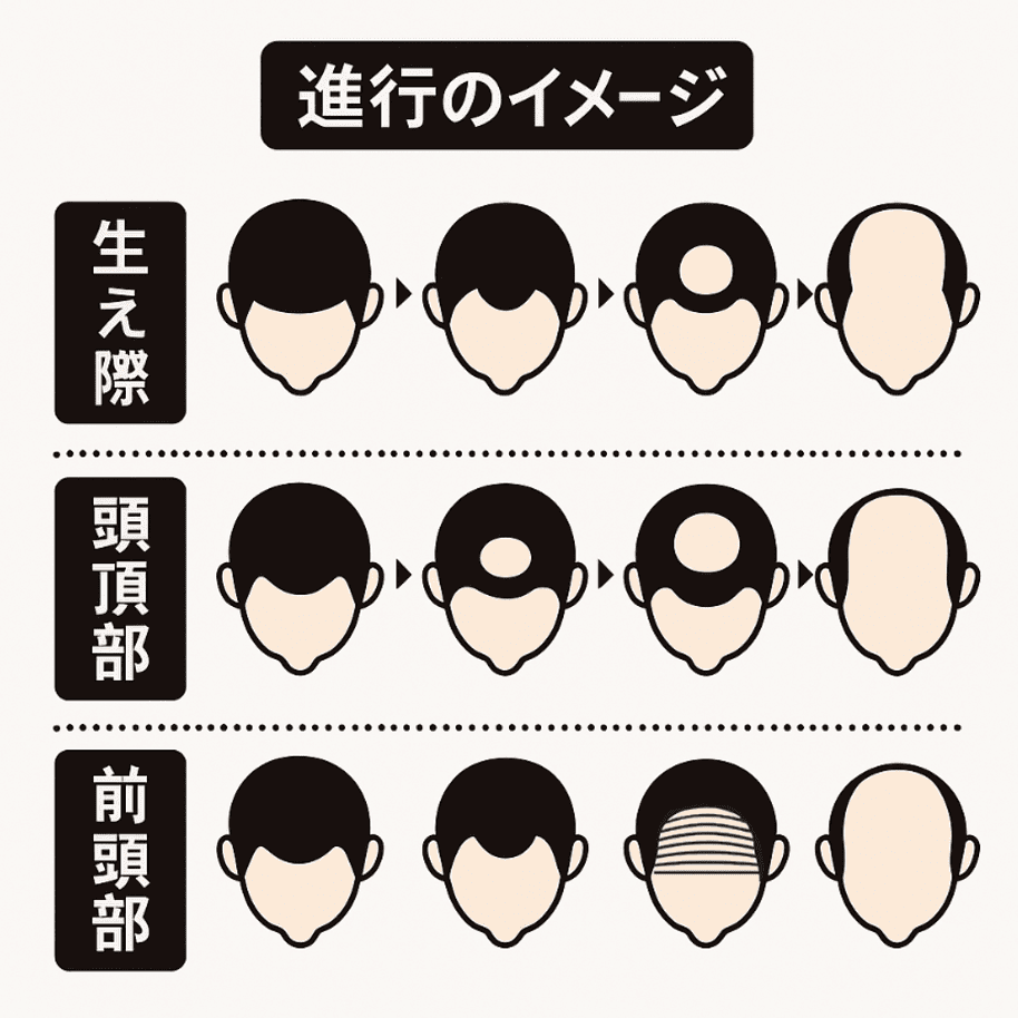 生え際が後退したりする症状のこと。