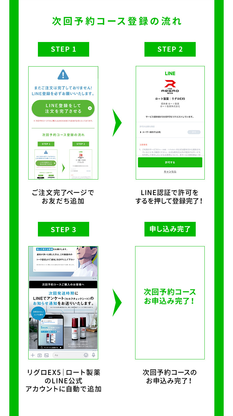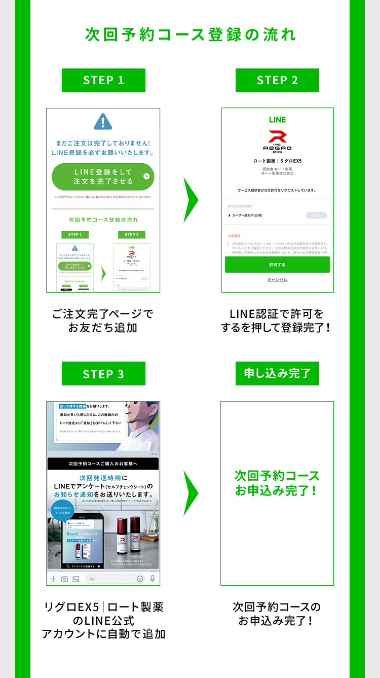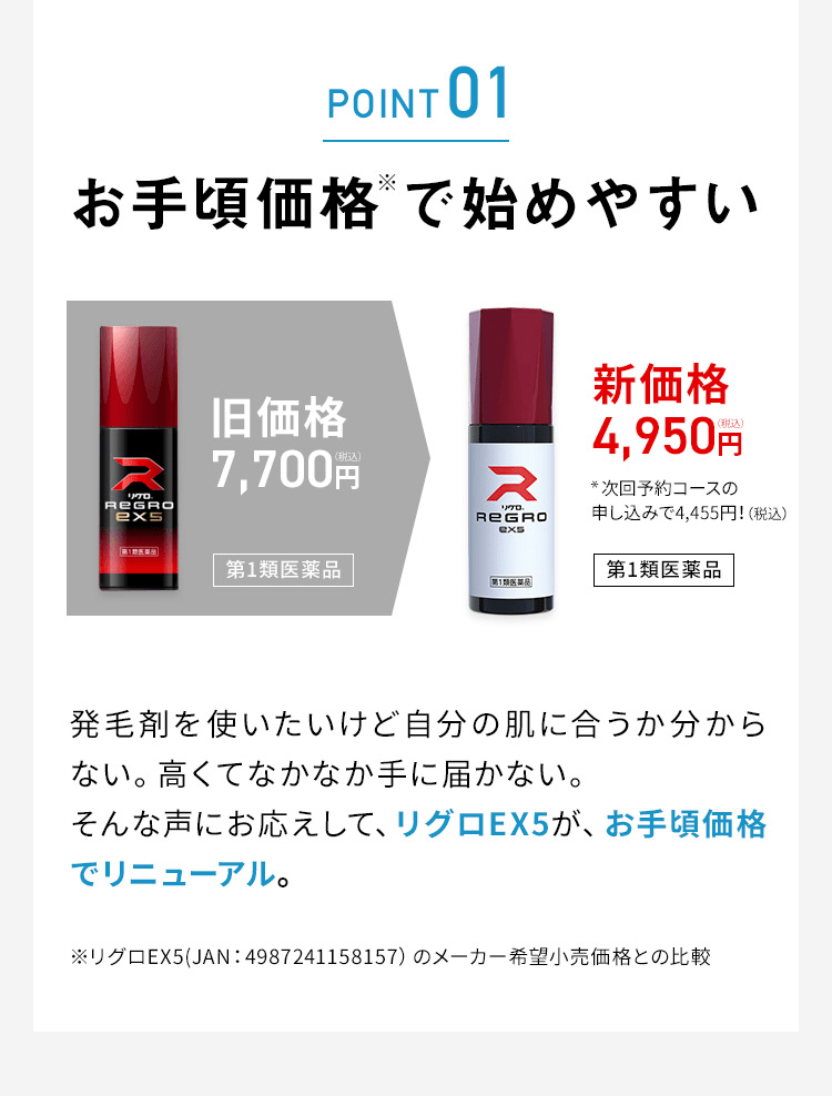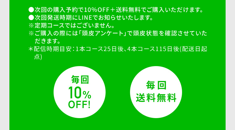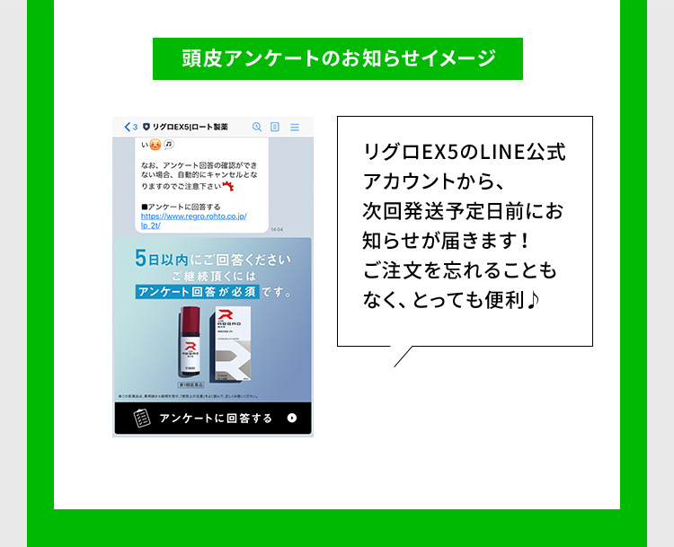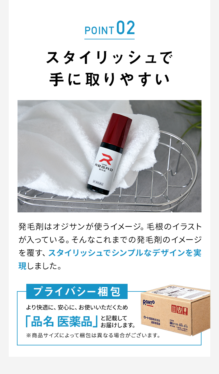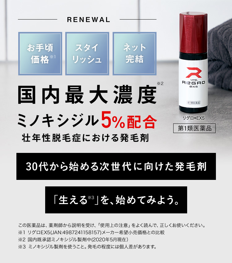 使用開始後6ヵ月以内であっても、脱毛状態の悪化や、次のような脱毛が見られた場合は、使用を中止し、製品の添付文書を持って医師又は薬剤師に相談してください。